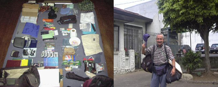 As an interesting tidbit, I have attached a photo of all I take on my trips.  It shows how much you can get in a very small space and represents a cross between a traveling seminary and a survival medicine chest for the critters and infernal heat of Nicaragua that have caused me many distractions on past trips.